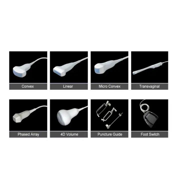 The system includes a Micro-Convex Probe and a Trans-Vaginal Probe, with additional probes available for purchase.
