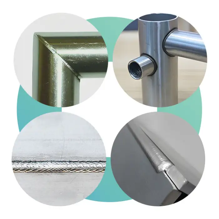 The machine is capable of welding various materials, including carbon steel, stainless steel, and other metals.