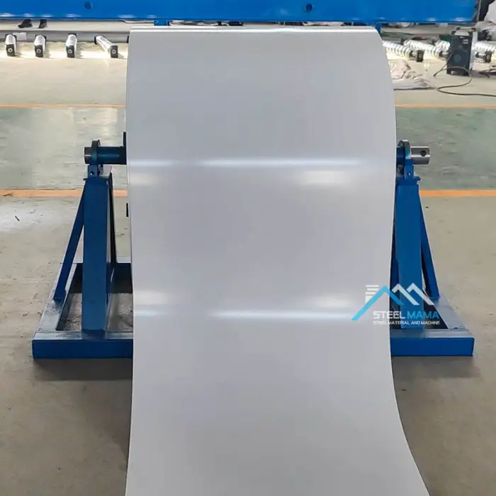 The decoiler is designed with a robust 350H steel frame for enhanced durability.