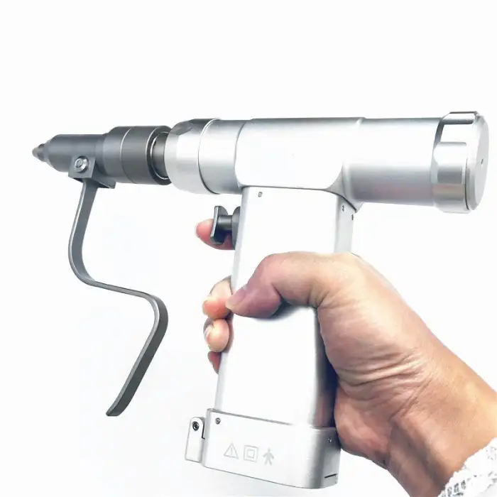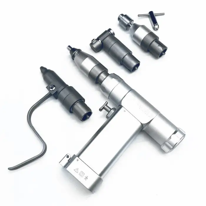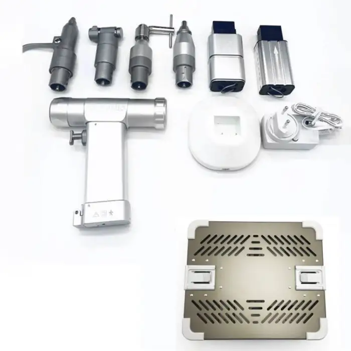 Key features include high-speed drilling, ergonomic handle, compatibility with various orthopedic tools, and ease of cleaning.