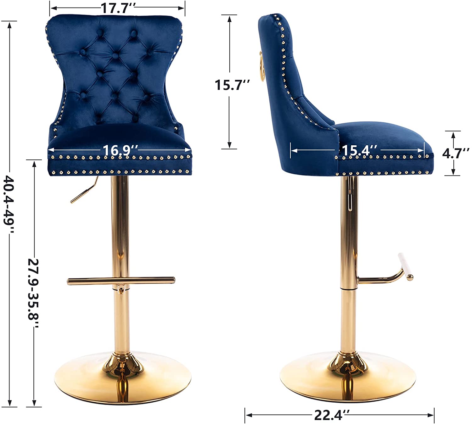 The seat height is adjustable from 27.9 inches to 35.8 inches, making it suitable for various counter heights.