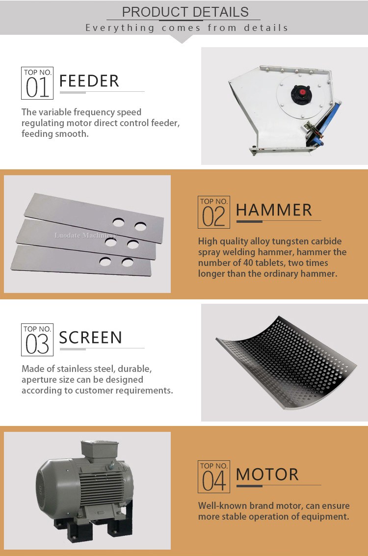 The LUODATE Hammer Mill has a capacity of 20 tons per hour.