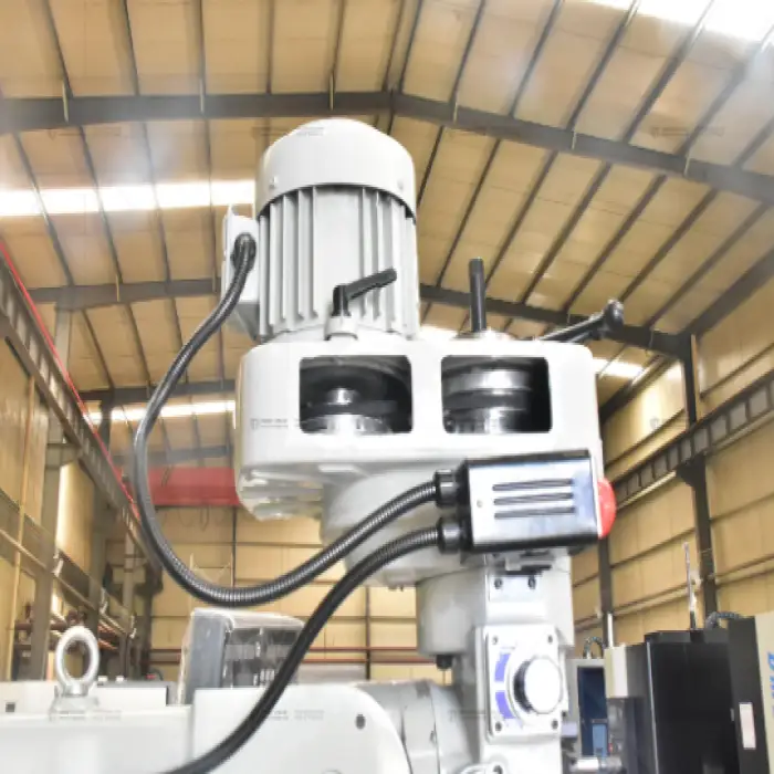 The universal swivel head allows for versatile milling operations, enabling various machining angles and orientations.