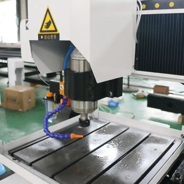 The Mini CNC Router Machine features a durable construction with a casting iron table.