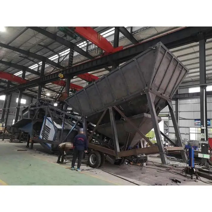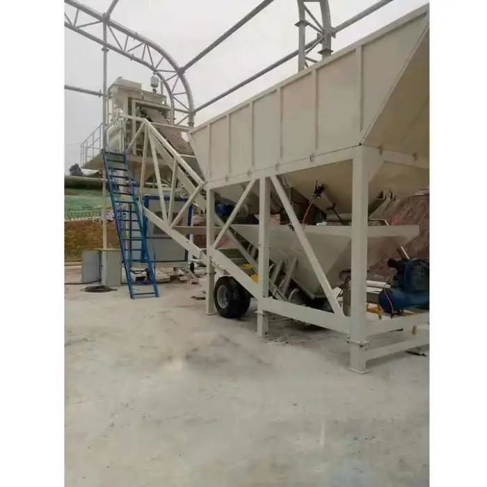 The Mini Portable 90m3 Dry Mix Concrete Mixing Plant is equipped with 4 aggregate hoppers.