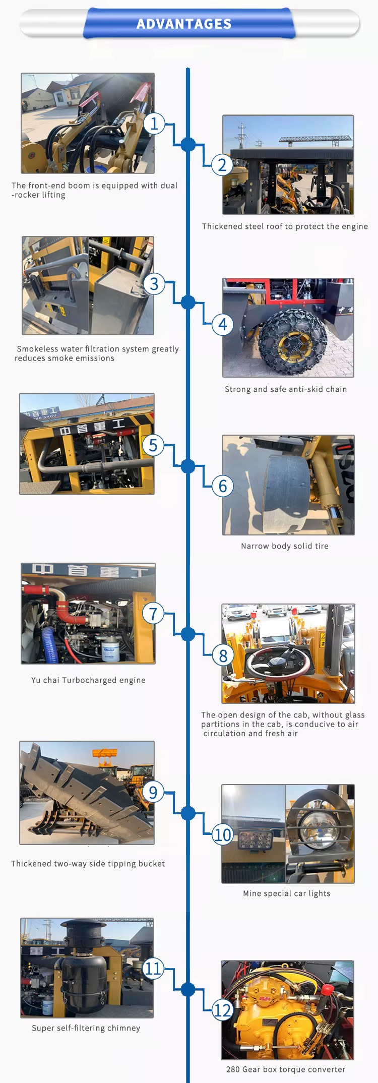 The ZSZG Mining Rock Bucket Wheel Loader is specially designed for mining tasks, has a narrow body for easy maneuverability, and is constructed with thick steel plates for durability.
