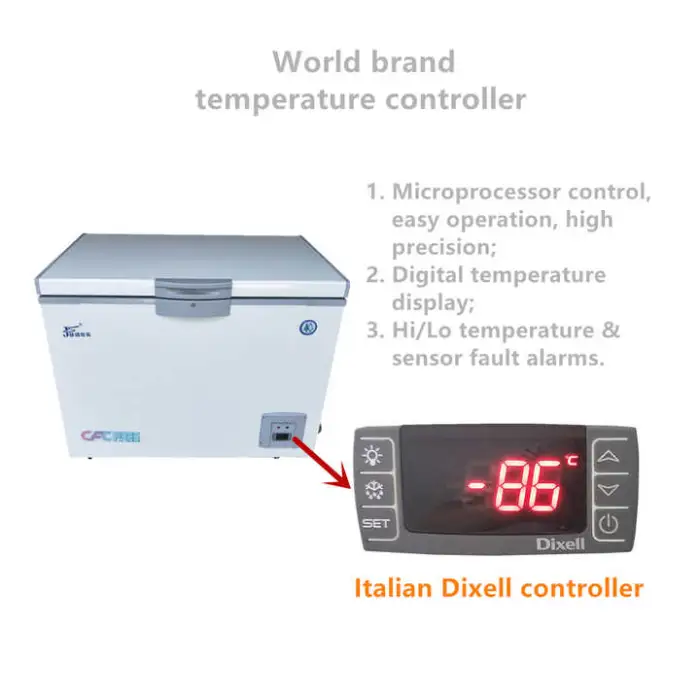 The temperature range of the freezer is between -40°C to -86°C, making it ideal for preserving biological samples and deep-sea foods.
