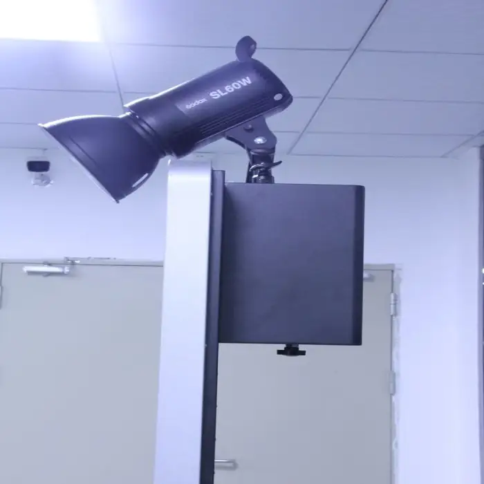 The photo booth is plug powered, ensuring a reliable power source during events.