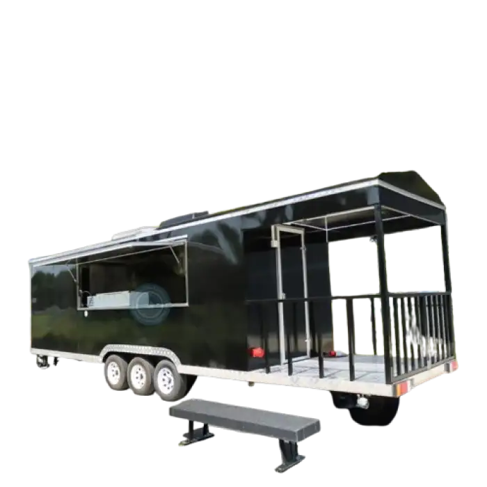 Yes. The spacious porch is designed for customer interaction, serving, and limited dining. Configure it for counter service or light seating depending on local regulations and your needs.