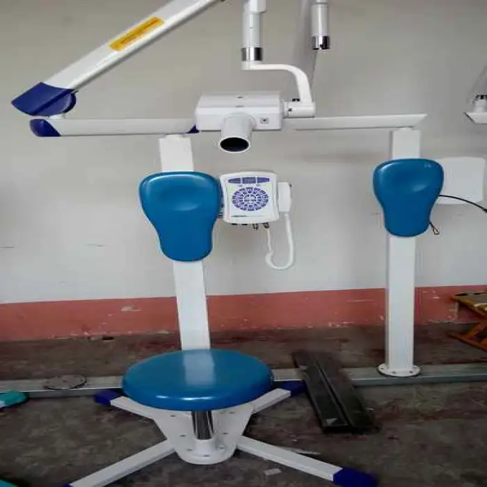 Verify that the unit has appropriate shielding, timer controls, and exposure settings, and that local radiation safety protocols and staff training are followed. Ensure use of lead aprons and thyroid collars as appropriate.