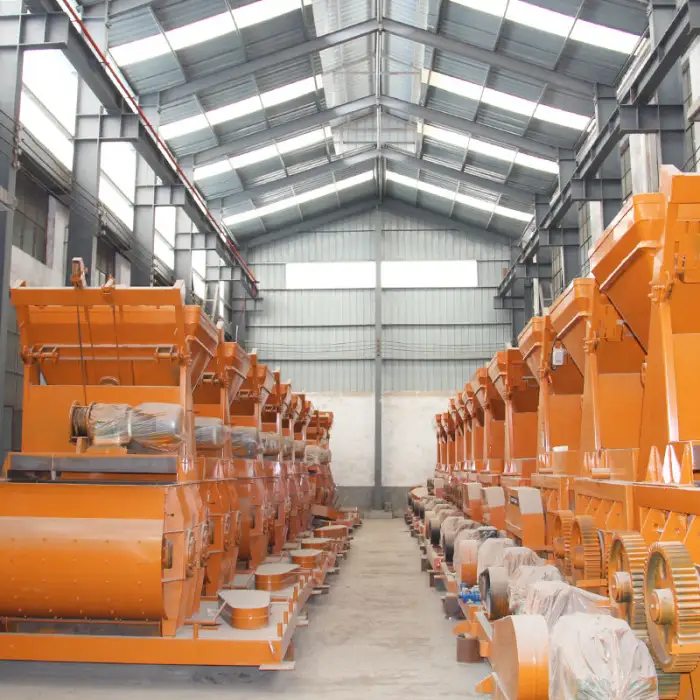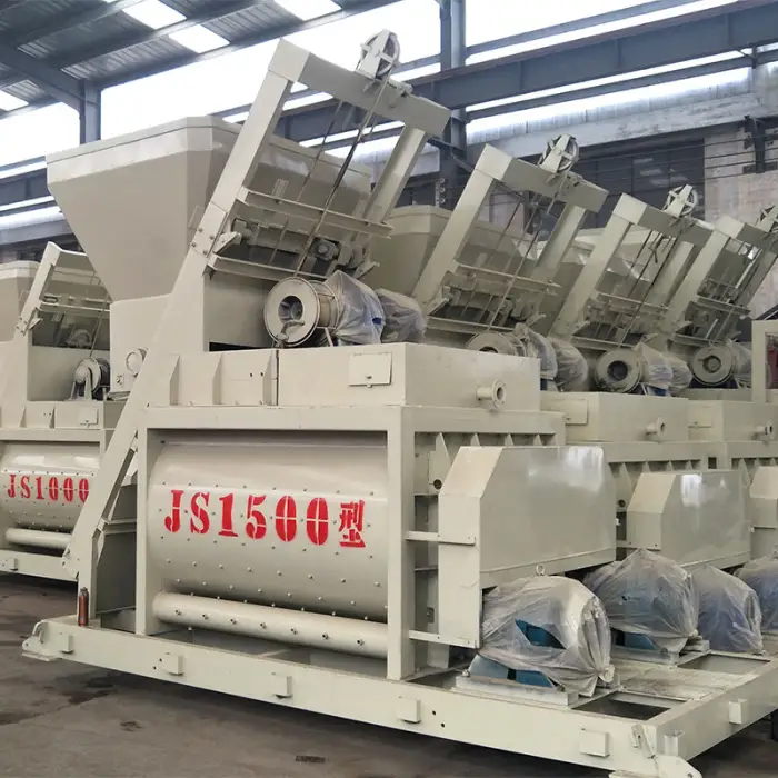 The plant can be equipped with different models of twin shaft mixers, including JS500, JS750, JS1000, JS1500, and JS2000.