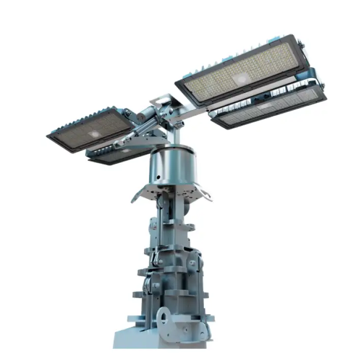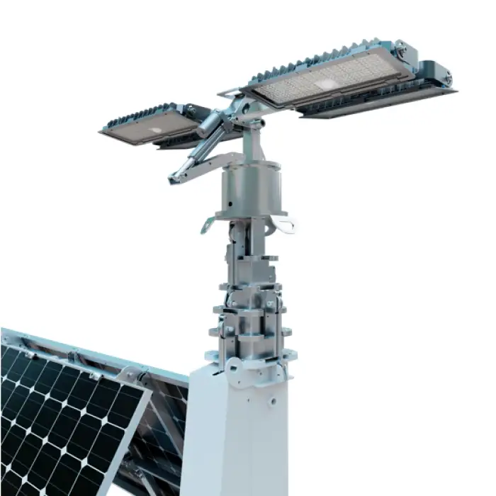 The Mobile Solar Light Tower provides up to 110,000 lumens of powerful LED lighting.