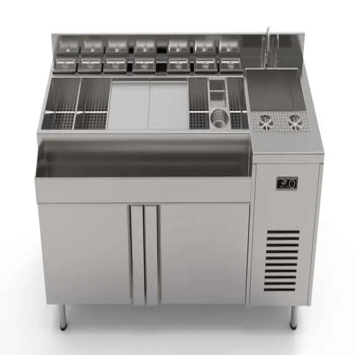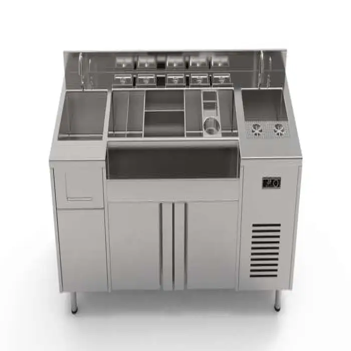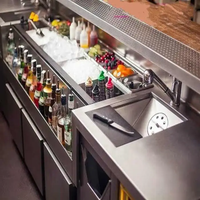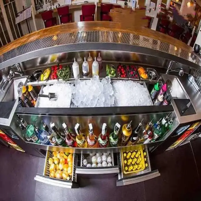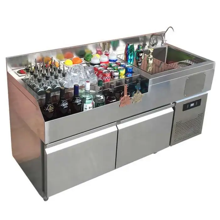 The product is designed as a mobile bar station. Many units are supplied with lockable casters for mobility, but wheel configuration can vary — confirm caster inclusion and type with the supplier.