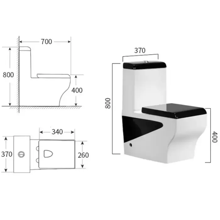 The toilet is made from high-quality ceramic with a self-cleaning glaze that ensures longevity and easy maintenance.