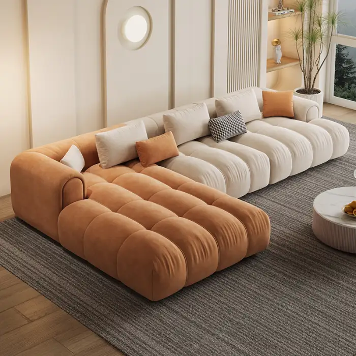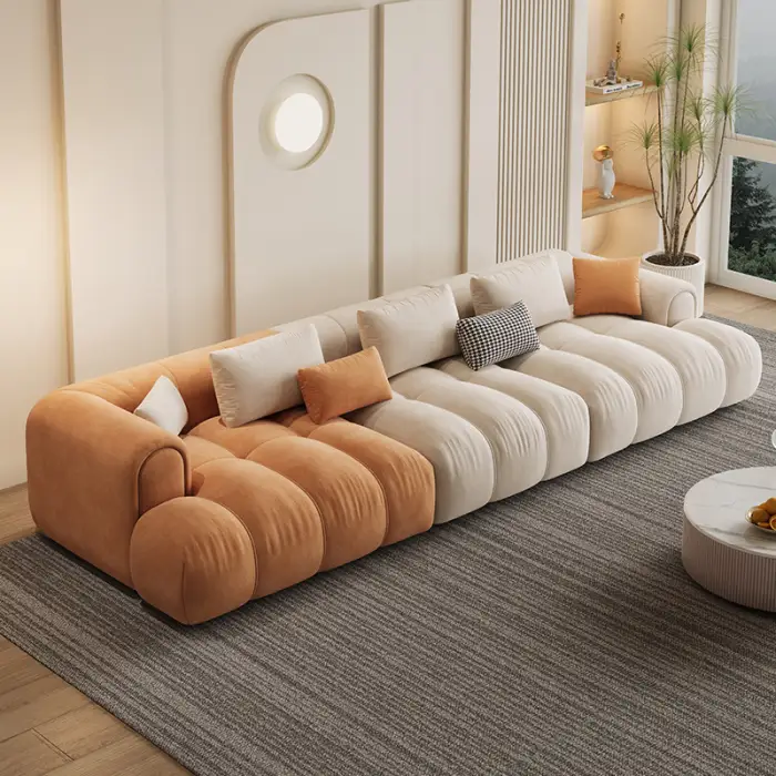 The sofa features a contemporary design style, making it a perfect fit for modern living spaces.