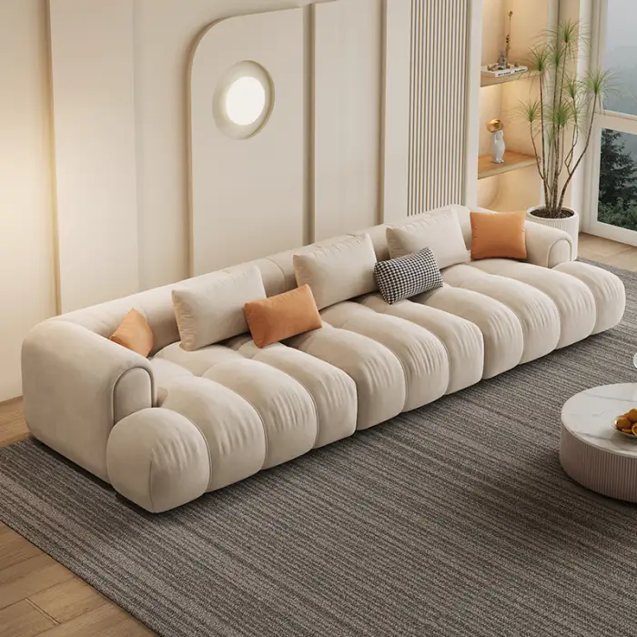 The sofa is designed to comfortably seat up to 5 people, making it ideal for family gatherings or entertaining guests.