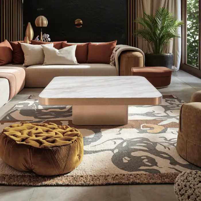 The coffee table has a spacious surface ideal for drinks, snacks, and decorative displays.