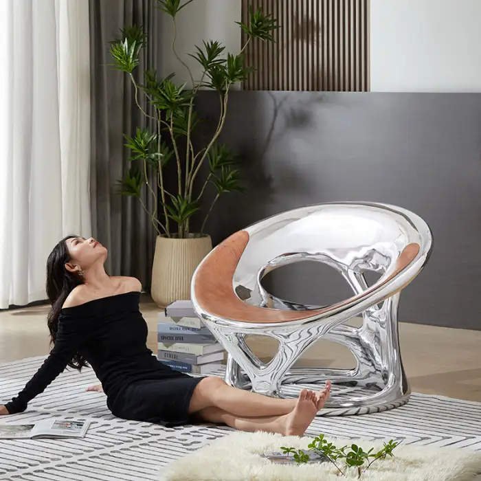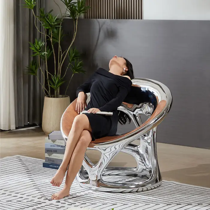 Key features include an ergonomic design for comfort, a unique creative appearance, and suitability for various spaces.