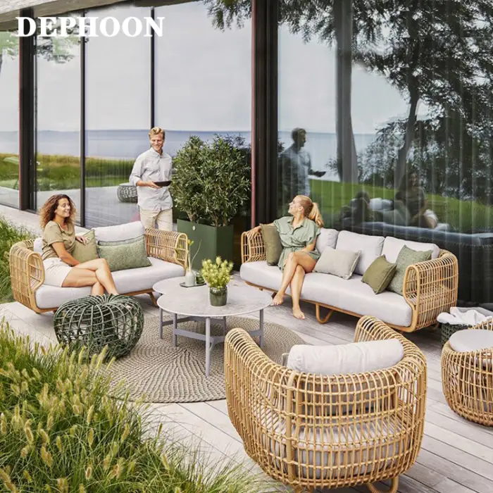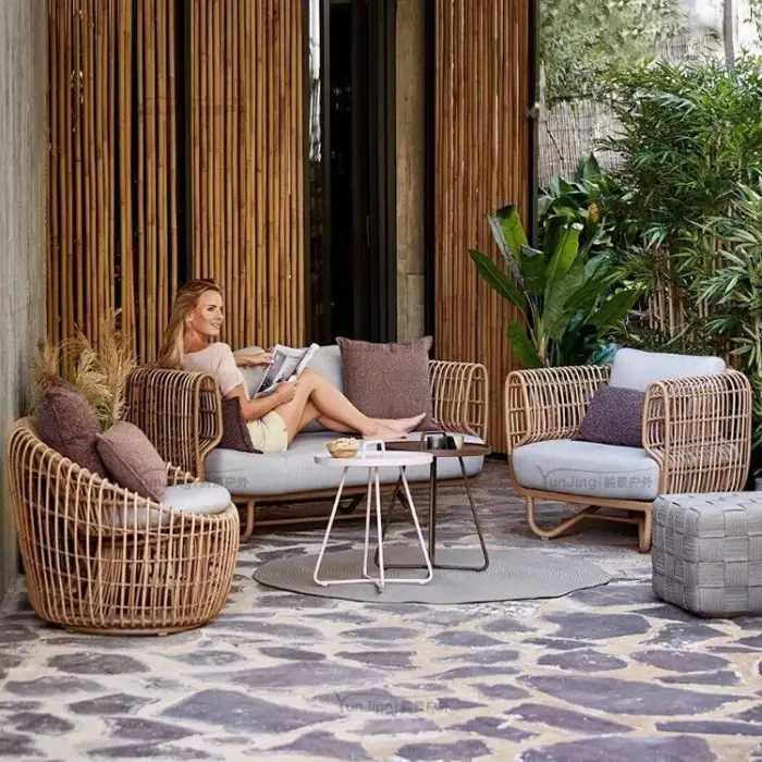 Modern Garden Set Waterproof Rattan Sofas -Created Cane Furniture for Living Room Villa Patio Furniture Park Furniture