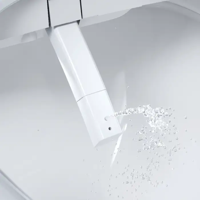 The automatic washing feature provides a gentle and effective cleaning experience, allowing for adjustments in water temperature and pressure through the remote control.