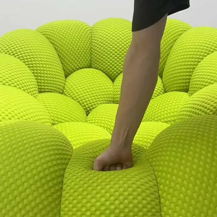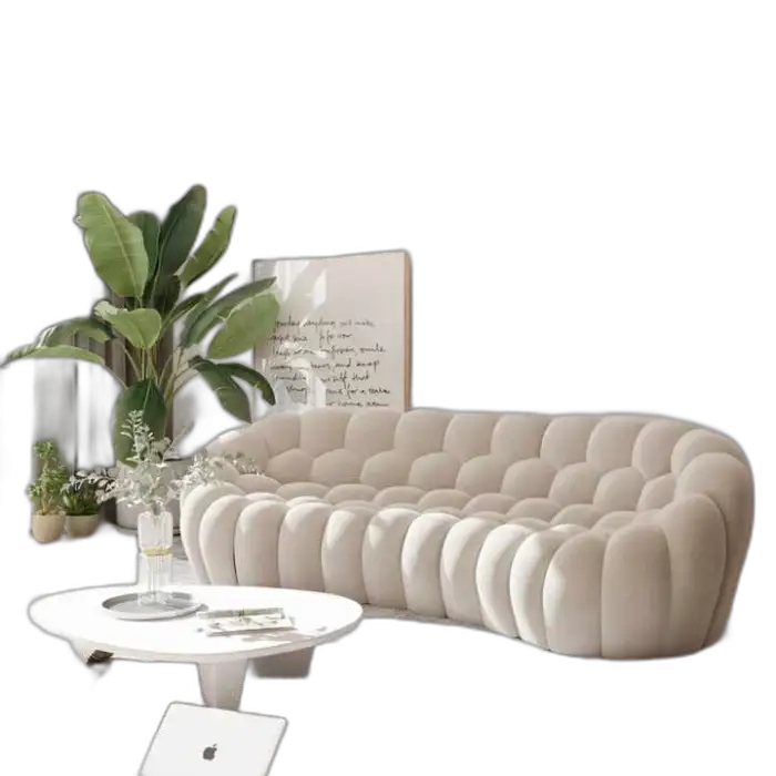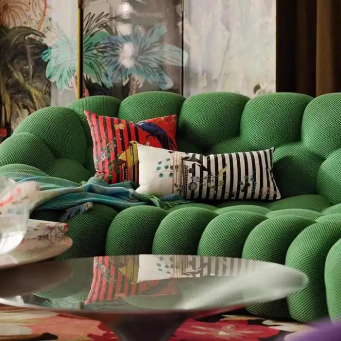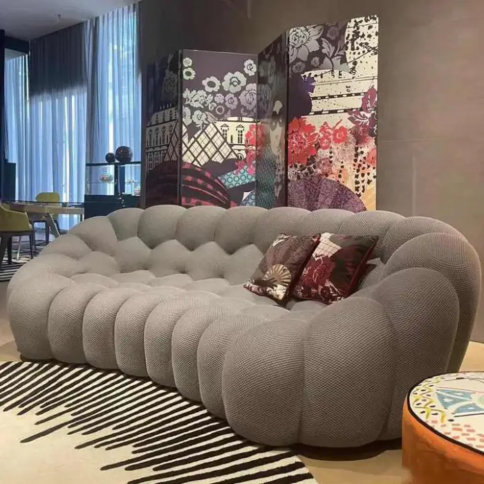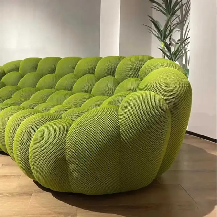 The sofa features an Italian design style, characterized by its modern aesthetics and unique curved honeycomb shape.