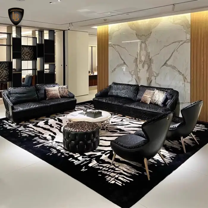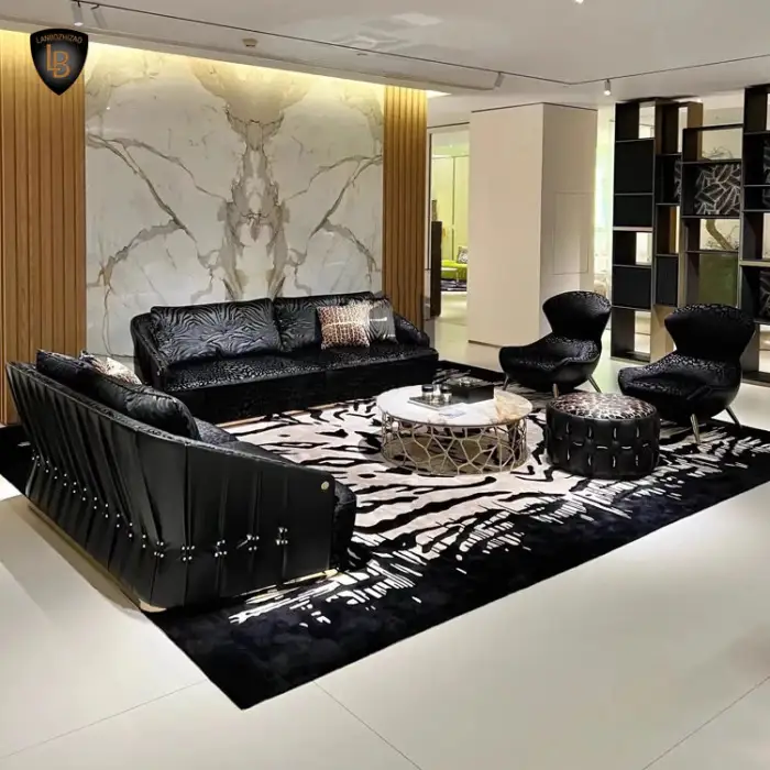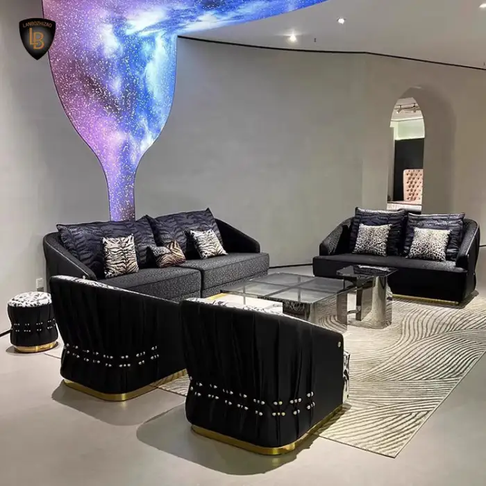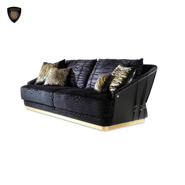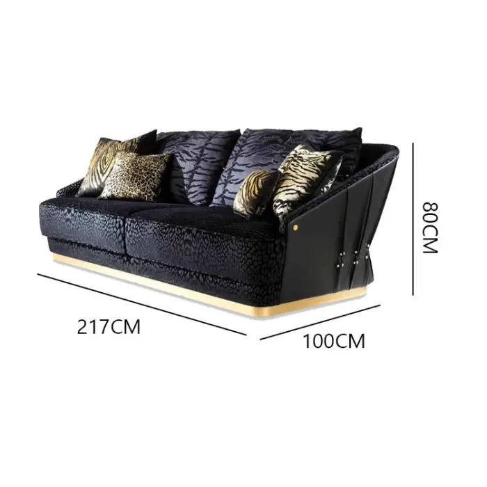 This sofa showcases a unique black and gold snake pattern that adds a touch of elegance and modern luxury to your living space.