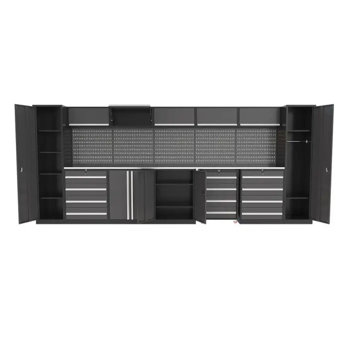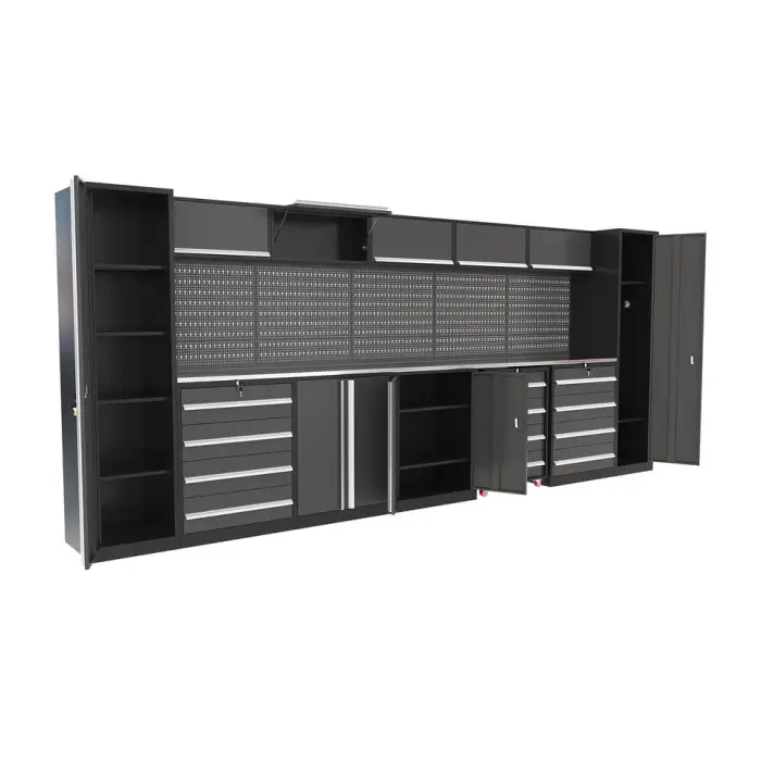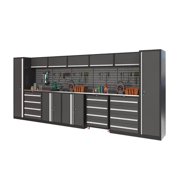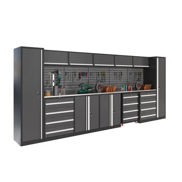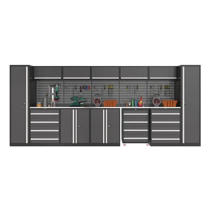 The Modular Workbench Toolbox features a modern style that enhances the aesthetic of any garage or workshop.