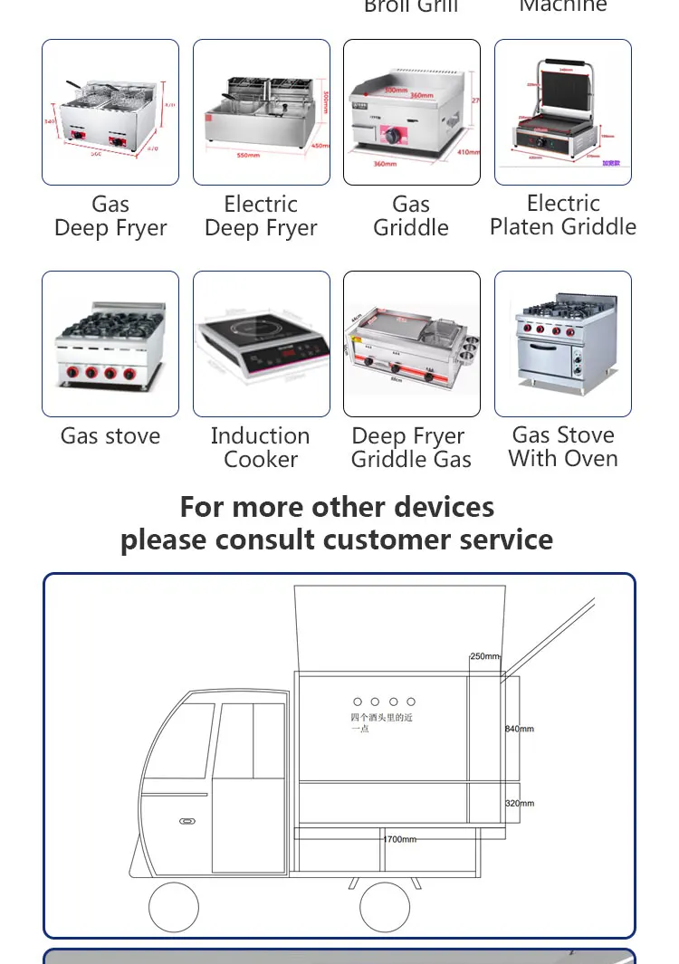 The food cart is available in 110V/220V or can be customized to your requirements.