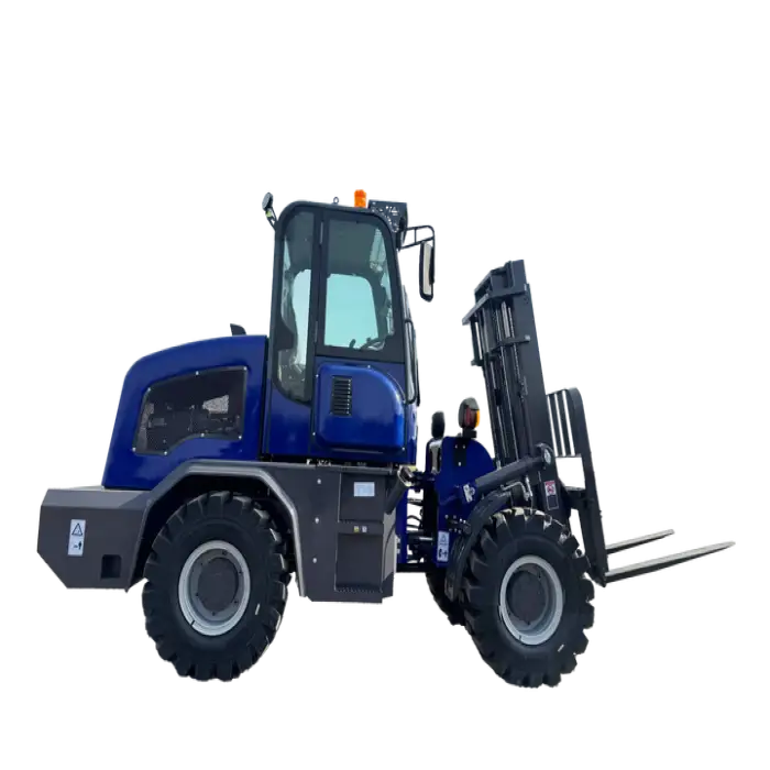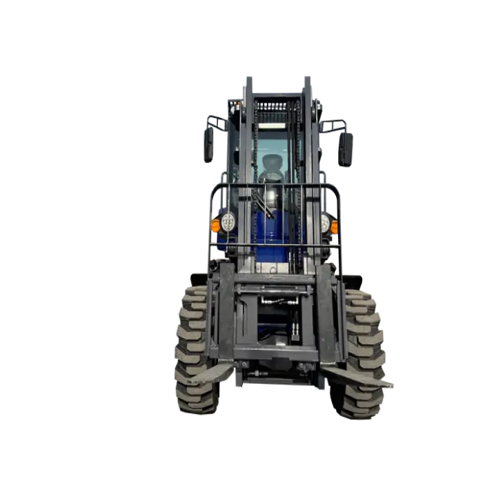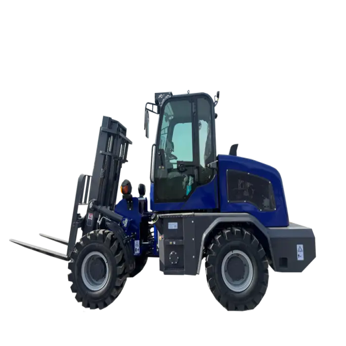 The four-wheel drive enhances traction and stability, allowing the forklift to perform effectively on uneven and challenging terrains.