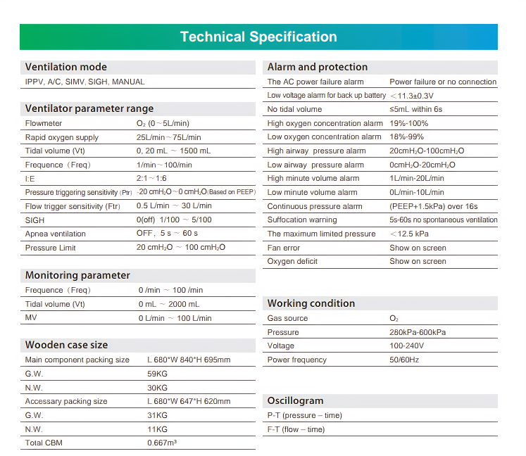 Yes, the machine features a comprehensive monitoring interface with a large 7” TFT LCD screen that displays critical ventilation parameters, alarm information, and waveforms in real time.