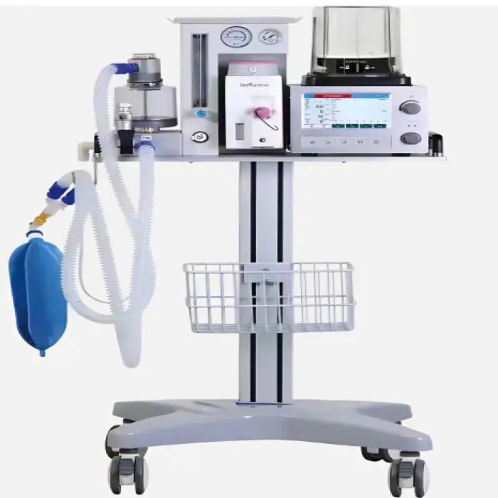 The anesthesia machine is equipped with a large 7” TFT LCD screen that displays critical information and graphics for easy monitoring.