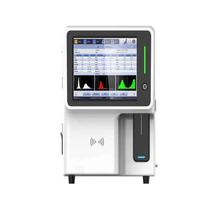 The analyzer includes data management features. For specifics on connectivity (USB, LAN, LIS/HIS integration or file export formats), check the technical manual or contact the vendor for available interface options.