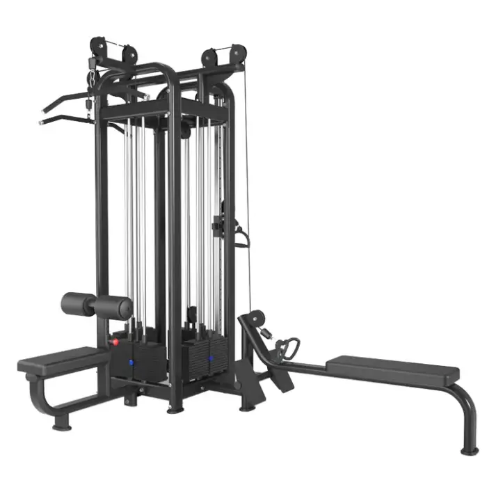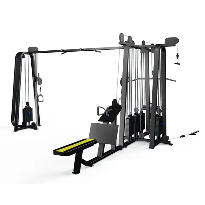 The multi-gym design with five stations allows for efficient, full-body workouts in one compact machine.