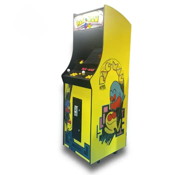 The arcade machine includes a sturdy metal upright cabinet for durability and an engaging game design that appeals to all ages.
