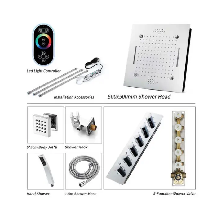 The showerhead measures 20 inches, providing a wide coverage area for a luxurious shower experience.