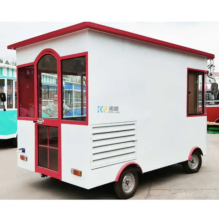 The food truck can be used as a food truck for fast food, a mobile boutique for clothing, an ice cream vending kiosk, or a pop-up shop for seasonal sales.