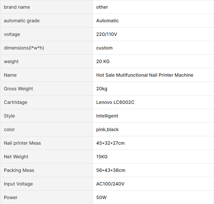 The exact dimensions and weight can vary by model, but most Multifunction Nail Printer Machines are compact and designed to fit comfortably on a salon workstation.