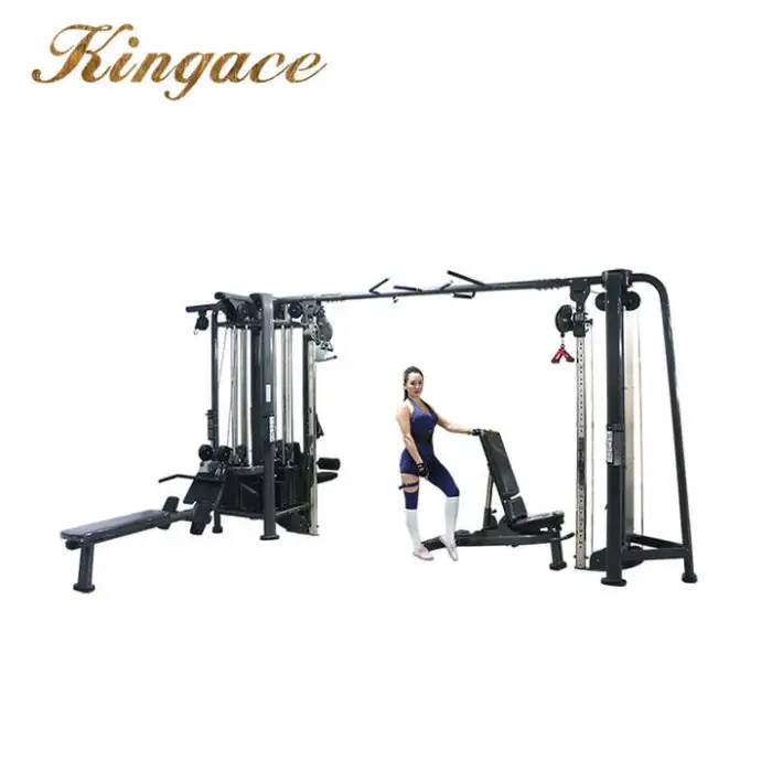 The Multi-Functional 5 Station Gym Fitness Equipment allows you to perform a variety of exercises including chest presses, crossover cable exercises, and other strength training workouts targeting multiple muscle groups.