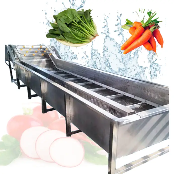 Bubble washing technology works by generating bubbles in the washing water, which gently lift dirt and contaminants off the surface of the produce without damaging it.