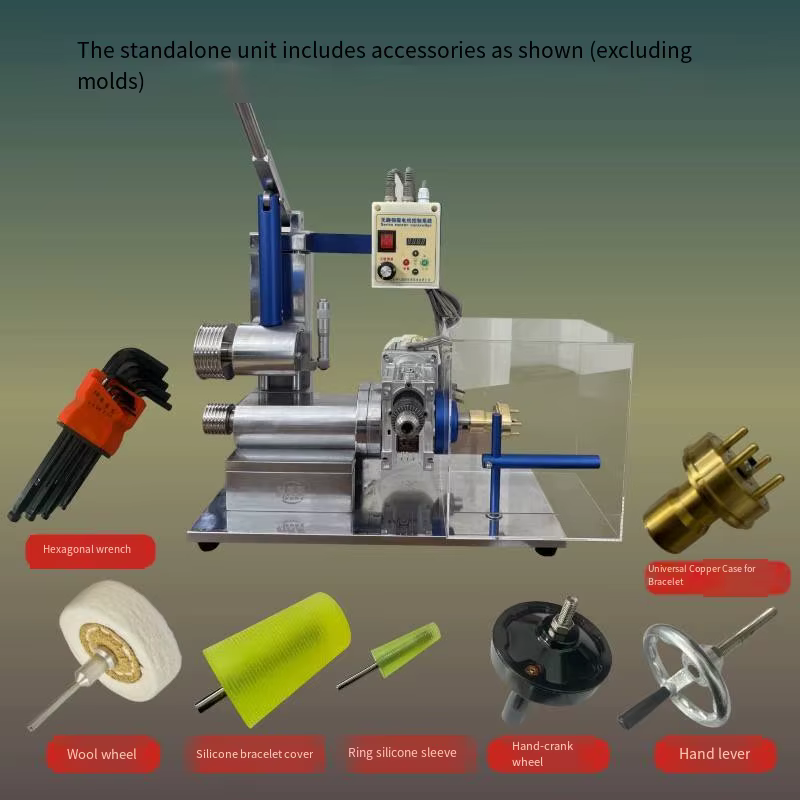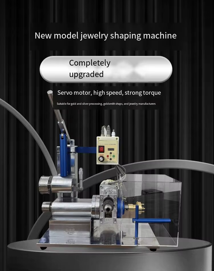 The machine features a powerful motor, ensuring high efficiency for various jewelry shaping tasks.