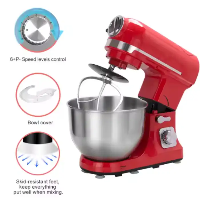 The mixing bowl has a capacity of 5 liters, allowing you to prepare large batches of food.