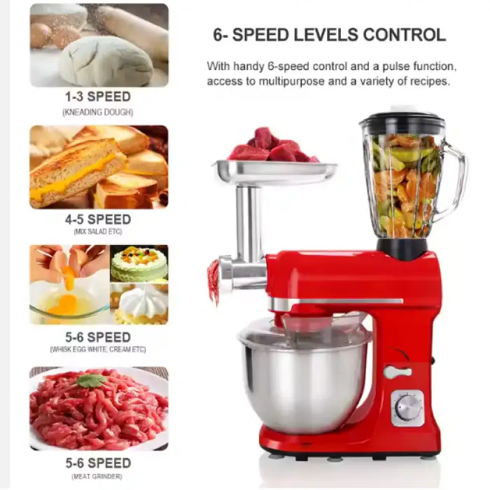 You can use this blender to make dough, whip cream, mix batter, prepare fresh juices, and grind meat.