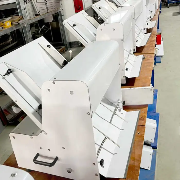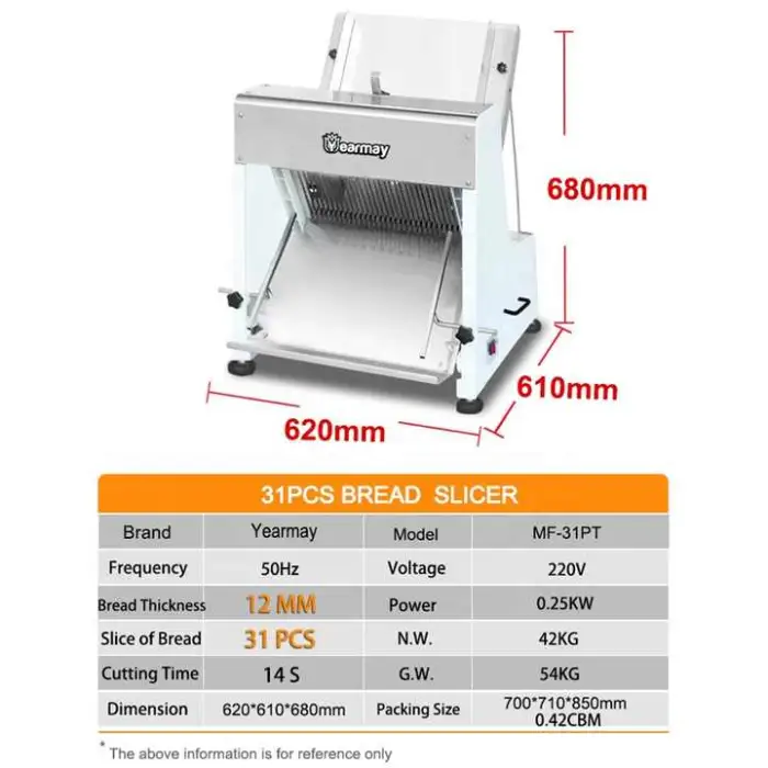 The bread slicer weighs 42KG, which contributes to its stability during operation.