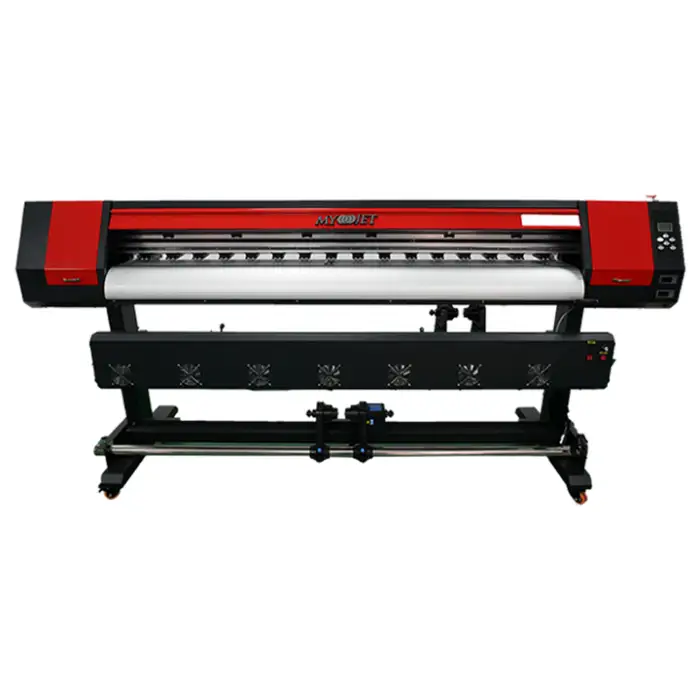 The MYJET I3200 Dx5 Xp600 can print on a variety of materials, including posters, banners, vinyl wraps, cloth, and fabrics.