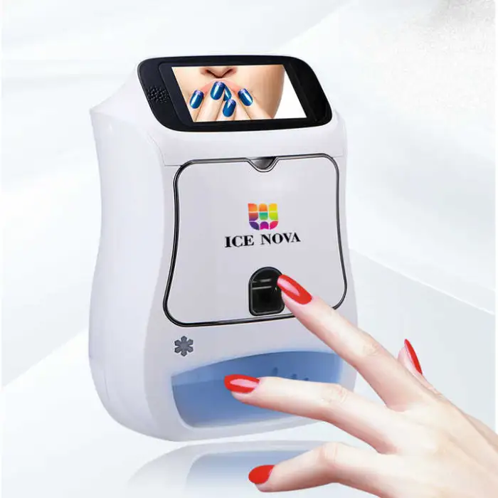 The machine uses 3D printing technology to apply customizable designs directly onto your nails, providing a fun and creative way to enhance your nail art.