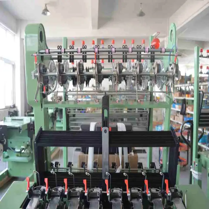 The Needle Loom Machine YS 6/45 is designed to produce narrow fabrics, including ribbons, laces, straps, bands, and other decorative textile products for both home and industrial applications.