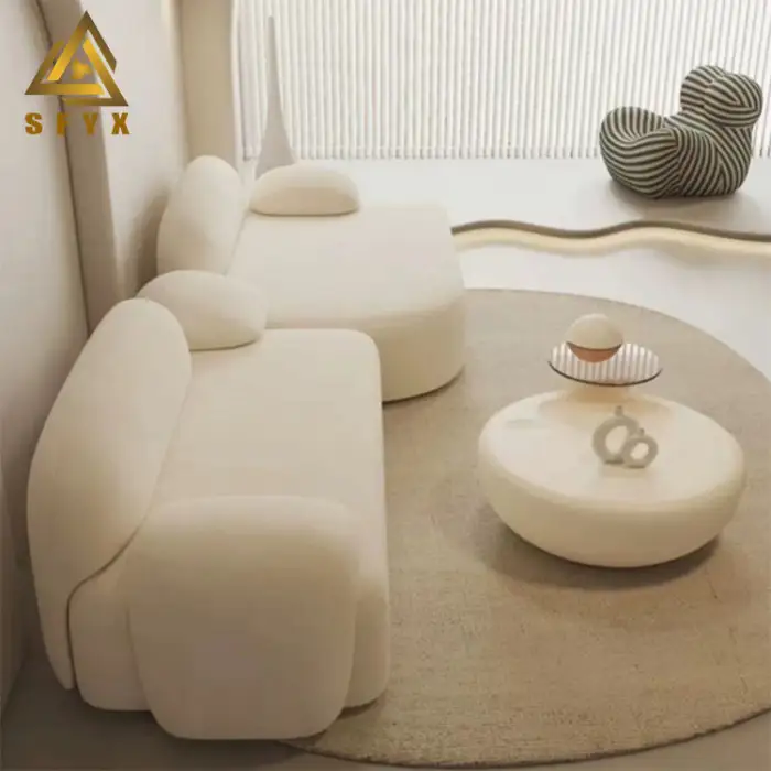 The sofa set features a stylish Nordic modern design.