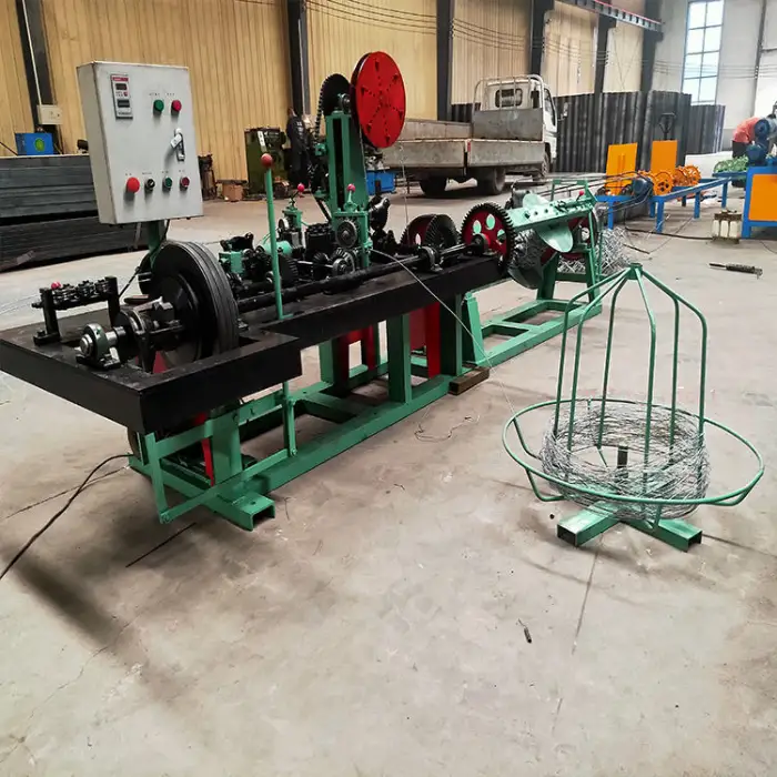 The machine is suitable for manufacturing barbed wire for fencing, security barriers, agricultural fencing solutions, and use in construction and industrial settings.