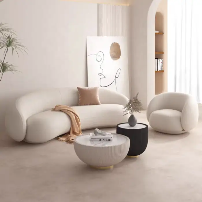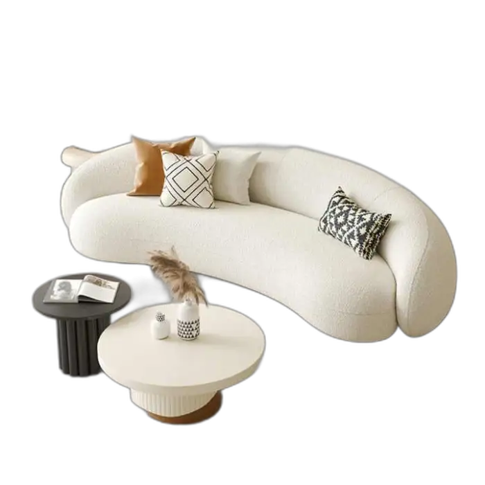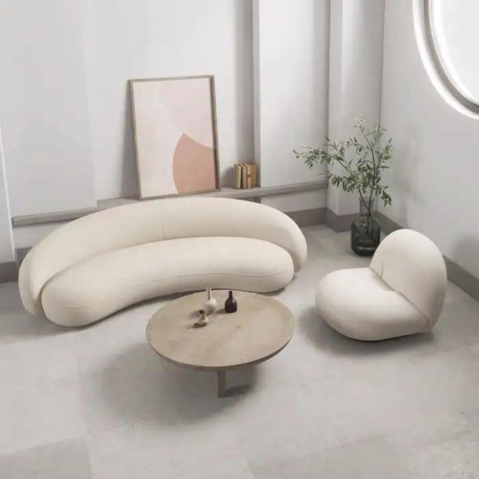The NOVA is a 2-seater modern loveseat designed for apartments and other compact spaces. It features a chic arc-shaped Chesterfield design with soft lambswool covers and sponge filling for comfort.