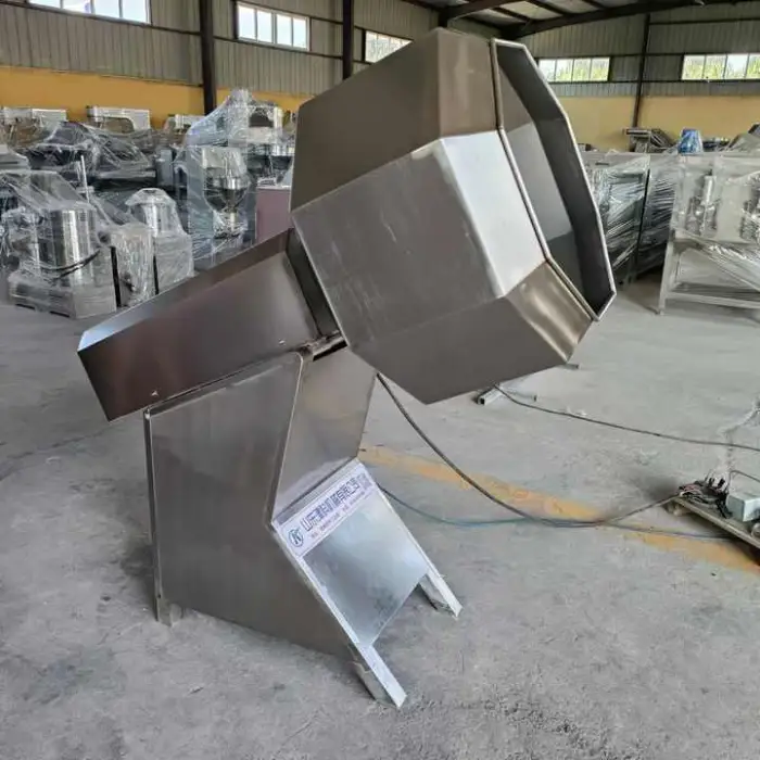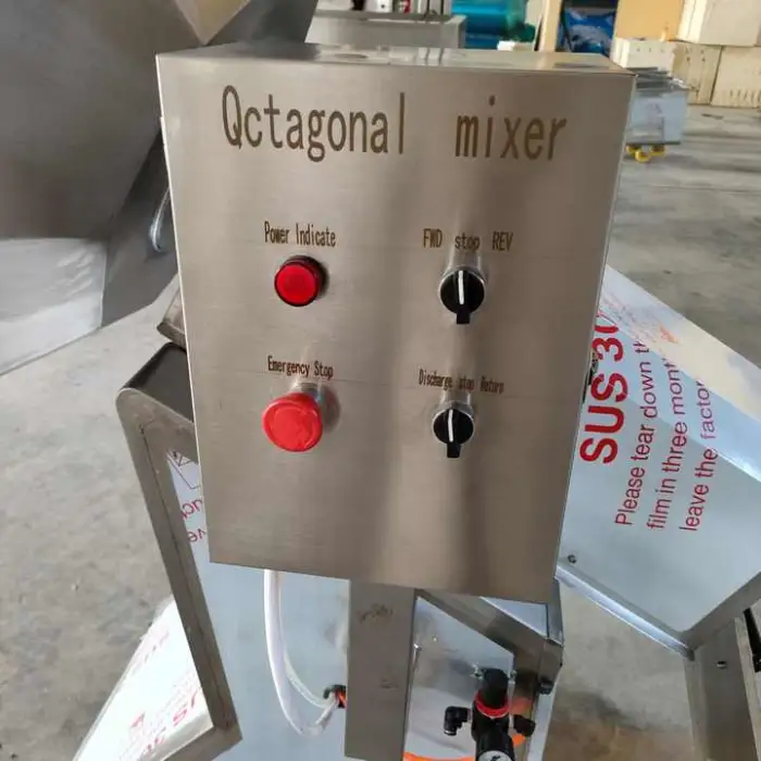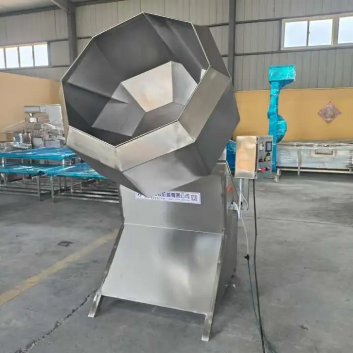 The Octagonal Snack Food Seasoning Mixing Machine is made of durable stainless steel, ensuring long-lasting performance.